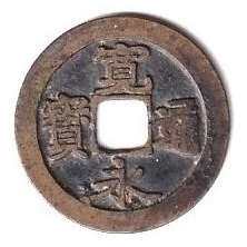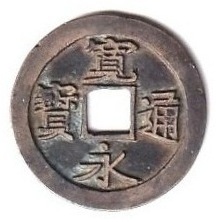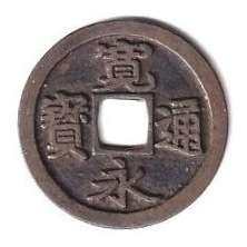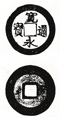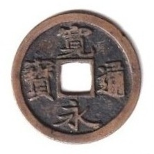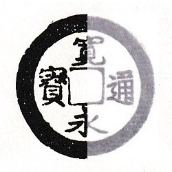 1月11日【再び競鑑古寛永】過去の蓄積画像より。26㎜を超える古寛永。ネットに出ていたのですけど持ち主不明で、情報はこの画像のみです。いかにも特別なつくりの古寛永・・・さて、これはなんでしょうか? |
