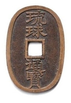 昨夜から腹が痛いし張る。むかむかするし、ゲップがさかんに出る。頭も痛いし、だるい。朝、体温を計測したら37.4度。今、38.1度ある。で、お休みしました。この後受診します。こういうときは古銭リハビリに限るのですが、あいにく大した入手物がありません。 この本座色の琉球通寶は今年の入手品第一号。実物はきれいでこれで桐極印だったら病は全快しちゃうのですがそうは簡単にいきませんね。琉球の黄色いものは小字と広郭にはありますが中字にはありません。この中字も黄色じゃなくて黄褐色。でもそんなに数はないと思いますよ。だからどうしたって言われれば実に苦しいのですけど。 |