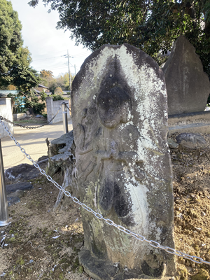 市原市の馬頭観音観音様なのに忿怒の相で、まるで不動尊のような顔。3面と8本の腕の像が多く、頭もしくは宝冠に馬の頭を戴くのが特徴です。市原市にはなんと400を超える馬頭観音が残されているそうです。(415ヶ所だそうで、どなたが数えたのでしょう。)古来、交通往来の要所であったこと、幕末に鶴牧・鶴舞・菊間の三藩が存在し、農耕文化とともに武家文化が色濃く残されていることも要因かと思います。子育講・出羽三山講や五人組の風習も昭和後期まで普通に残っていました。石仏・碑等が残るのは馬が亡くなった場所や埋葬地・供養された寺院の他、街道沿いに建てられ道標や一里塚等になっているケースもあるようです。画像は大厩から若宮に抜ける道に残る馬頭観音。道祖神神社と呼ばれる小さな祠の周囲にあるもの。年代は不詳。 (庚申塔とよく似ていますが腕の本数が多く、鳥や猿の従者がいません。)。 |