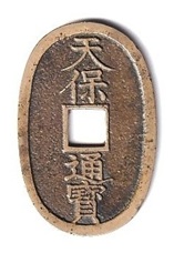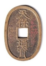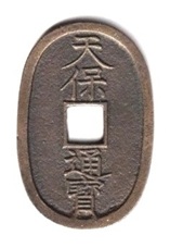 (→ 天保銭極印図鑑)重量もずっしり重く、郭も増郭(嵌郭)されているようで広郭気味です。地味ながらかなりの珍銭だと思われます。