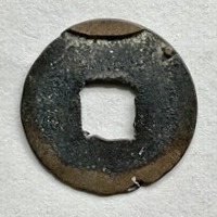 小点尓は昨年入手に費やした価格の中のNo2で、しかも真贋等に不安を抱きながらも購入を踏み切るなど、私にしては大博打を打った品でした。 2025年3月23日に同炉銭の極印の話について書いた際に尨字に関して触れたので、次は手持ちの尨字塞頭通の拡大撮影を行い、話題にしようと心に決めていました。私の尨字塞頭通は収集の誌上入札で遊び半分で落札したものです。 マ頭や當田などに加刀があり、通頭は口をあけ、田の十の横画の両端が縦画に接していないように見えます。天保泉譜には「不接培」という名称で掲載されていたものがあったのがとても気になっていました。 この塞頭通は入手した直後にうっかり妻に話をしてしまい、少しばかり「馬鹿じゃないの」と、睨まれたこともあってさして話題にもせずそのまましまい込んだ形になっていました。 したがって、撮影の際には鋳肌や極印などをじっくりと見なおすことができたのでした。 それから1ヶ月後にTICCで小点尓に出会うのですが、購入を決断するまで30分以上は店頭で迷っていたはずです。その間、懸命に記憶を絞り出していました。私の記憶像もあやふやで正直絶対と言えるものではありませんでしたが、確かこうだった程度の印象が残っていたのは幸いでした。そして細かい砂目と地肌のうねり、極印の印象だけで・・・えいやっと買ってしまったのです。博打ですね。けっして褒められたものではありません。 泉譜における小点尓は、長径49㎜台の塞頭通に比べて皆小さく48㎜台です。銅色は黄褐色ともありますが、紫褐色~黒褐色の異製作のものも多いようです。 ただし、私の頭の中の情報はあくまでも塞頭通の印象ばかり・・・それもぼんやりとしたものに過ぎません。 小点尓は不知天保通寶分類譜に上巻の中郭手「寶の変化」に4枚、「製作の変化」に広郭気味になったものが1枚掲載されているだけ。そもそも比較する現物そのものがあまりないのです。 小点尓が尨字の仲間だと語ったのは、私が知る限りは天保仙人様が方泉處誌上でインタビューに答えた記事を読んだぐらいですので、その発見者は天保仙人様なのかもしれません。 その後、極印の一致ととらさんのご指摘で特徴的な文字画の欠損などのポイントが見つかり、どうやら私の小点尓も大丈夫そうだと自分で結論付けた次第です。 仙人様がおっしゃるように鋳肌のぬめぬめ感がない点は確かなのですが、これは塞頭通を観察する限り地肌の穴ぼこを塞ぐような地染め加工と鋳ざらいの有無が大きそう。側面の色を見る限りは、小点尓と塞頭通の銅色は黄褐色でよく似ているのです。 結果として私は「運が良かった」・・・あるいは「運が良かったと思い込んでいる」おめでたい人なのかもしれません。一昨年は会津大濶縁、昨年は本座広郭母銭(背大郭)で大失敗しましたので、これが失敗となると立ち直れないかも。(懲りないけど。) 知らぬが仏。もう少し幸せでいたい私です。 ※塞頭通として入手しましたが、マ頭が開き不接培気味になっています。