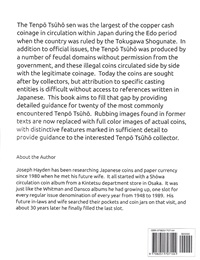 (AI翻訳:裏表紙) 天保通宝銭は、江戸時代に徳川幕府の統治下にあった日本で流通した銅貨の中で最大のものであった。公式鋳造に加え、天保通宝は多くの藩によって無許可で鋳造され、これらの非合法な貨幣も正規の貨幣と並んで流通していた。今日ではこれらの貨幣は収集家に人気があるが、日本語で書かれた資料にアクセスできなければ、特定の鋳造元を特定することは困難である。本書はそのギャップを埋めることを目的とし、最も一般的に見られる20種類の天保通宝について詳細なガイドを提供している。従来の文献に見られた拓本画像は、実物の硬貨のフルカラー画像に置き換えられ、特徴的な部分が十分な詳細さで示されているため、関心のある天保通宝収集家にとって有益な手引きとなっている。 著者について Joseph Haydenは、1980年に後に妻となる女性と出会って以来、日本の硬貨および紙幣の研究を続けている。そのきっかけは、大阪の近鉄百貨店で購入した昭和期の現行貨幣アルバムだった。それは彼が子どもの頃に使っていたWhiteman&Danscoのアルバムと同様で、1948年から1989年までの各年ごとの現行貨幣を収めるためのスロットが一つずつ用意されていた。彼は訪問の都度に将来の義理の家族や妻とともにポケットや貯金箱の中の小銭を集め続け、約30年後にようやく最後の一枠を埋めることができたのだった。 |
