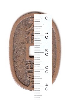 1月11日【再び競鑑古寛永】過去の蓄積画像より。26㎜を超える古寛永。ネットに出ていたのですけど持ち主不明で、情報はこの画像のみです。いかにも特別なつくりの古寛永・・・さて、これはなんでしょうか? |