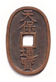 | 2月15日【天保通寶80文】 天保通寶が「80文で通用した」という話(時期によってそうだったときもある)を理解するには、江戸時代の勘定慣行を知る必要があります。 寛永通寶は元文期から鉄一文銭が登場しましたが、当初は鉄銭と銅銭が等価で流通していました。しかし民は見栄えの良い銅銭を好み、次第に退蔵するようになります。「悪貨は良貨を駆逐する」というグレッシャムの建言は、この状況をよく表しています。 1835年に天保通寶の鋳造がはじまった時点では、銅の寛永通寶一文銭が生まれてからほぼ200年、銅から鉄一文銭に主流が切り替わりはじめてからも95年以上が経過していました。寛永通寶の銅一文銭の大半はすでに“古銭”と呼ぶべき存在だったのです。 金座はこの退蔵古銭に目を付けたのでしょう。幕府を通じ両替商に対し、「新銭百文×5枚を旧銭400文と交換する」という触れを出しました。この差額がいわゆる「増歩(ましぶ)」です。江戸時代には金銀貨改鋳のたびに旧貨回収のため増歩が行われており、その慣行を天保銭にも適用したわけです。それだけ天保銭の鋳造利益が莫大だったとも言えます。 旧銭400文が新銭500文になるので、銭挿し400文が500文になる…天保銭1枚分儲かった、すなわち100文が125文に化けたといえます。これぞ「増分」ですね。 琉球通寶が125文の価値で通用したという誤った解釈は、この増歩の誤解に由来すると私は考えています。(正しくは銭125文相当と交換された。)しかもこの誤説が古銭書に堂々と記されているのだから困ったものです。当時は「96勘定」といって、銭96枚の銭挿しを100文として扱っていました。これを踏まえると実質の増歩は24文相当となります。 一方で、天保通寶を銭に再両替すると(増歩分を返却すれば)今度は5枚で400文にしかならず、1枚あたり20文の差損になります。算数が苦手な頭ではとてもややこしく感じられますが、天保通寶が80文相当とみなされ実際に流通した時期があった背景には増発のたびに増歩が慣習化されたための自然な帰結なのだと考えられます。天保通寶の通用停止は明治24年、地方ではその後もしばらく使えたようですが、その頃には鉄銭80文になっていたようです。したがって天保通寶80文が通説になったのは明治時代の記憶の可能性が高い気がします。 ところで明治4年の公定レートでは、天保通寶1枚は鉄銭128文とされました。鉄銭全盛の時代なので決して不利な交換レートではありませんでしたが、銅一文銭のバブル状態から見ると損をした気になるのも分かりますね。 これに96勘定を適用すると、天保通寶1枚で得られる鉄銭は96枚+28枚で124文となり、増歩24文と合流します。つまり、一見不可解に見える「天保通寶=鉄銭128文」という半端なレートも、増歩と96勘定を巧みに組み合わせた計算であることがうかがえるのです。 江戸時代の貨幣制度は、金・銀・銭・米の4つの相場が絡み合い、幕末にはさらに藩札や銅・鉄銭の種類による交換レートまで混在していた複雑怪奇極まりないものでした。 下に掲示した表は明治維新前後の公式交換レートですが、この時期に銅一文銭に対する天保通寶の交換価値が急落していることが分かります。急落の背景には、天保通寶の密鋳利益による反政府勢力の台頭を抑える意図が強くあったと考えられます。密鋳で利益を得て倒幕に成功した藩が、今度は政府側に回ってその力を恐れるという皮肉な構図ですね。(倒幕の原資になった密鋳の証拠隠滅の意図もあるかな?) また、最期の銅一文銭の公鋳から100年近く経った明治初期に突如として寛永通寶の阿仁銭(加護山密鋳銭)がつくられたのは、空前の“銅一文銭バブル”が生じたためと私は考えています。 このように江戸期を通じて銭の交換レートは、私たちの想像が及ばないほど乱高下していました。これは天候等に左右される米相場に貨幣経済を連動させた幕府政策の大きな欠点でしたが、銭の密鋳が行われた時期や理由などの時代背景を読み解く上では非常に興味深い歴史の道しるべになっているのです。 幕末の公式レート(実勢レートとは異なるかもしれません。)
