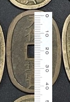 おもちゃのように小さな秋田小様の次に本座の母銭の掲示です。大きさは長径で秋田小様とは2~4㎜違います。 左の品は最近ネットで拾ったもの。とはいえ、3万7500円ほど支払ったので、掘り出しものというよりお買い得品ですね。 ネットで大きさ表示がなく追随者が少なかったのが幸いで、さして欲しくもなかったけど値段が吊り上がっていなかったこともあって好奇心の落札。 実物はかなり使用感のある母銭で、面側の郭右に墨書きのような痕跡がありそうなんですが・・・分かりませんでした。 最近のネット上の母銭は怪しいものばかりです。文字が太いもの、表面がざらつくようなもの、黄色いもの、光沢があって美しすぎるものは要注意。母銭は積極的収集の対象外にしていたこともあり、実は長郭母銭は初めての入手。非生産的な両替活動をまたしてしまっただけなんですけど、まあ、いいかな。 人手不足と年度末の処理、子供の学費と家賃支払いでこんなことしている場合じゃないほど大変なんですけどね・・・。 |